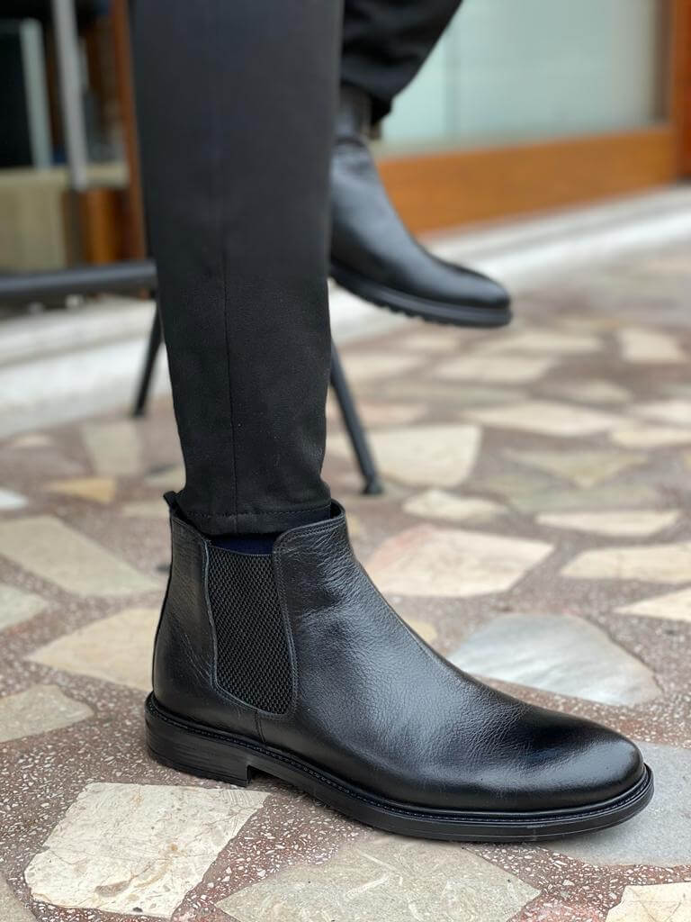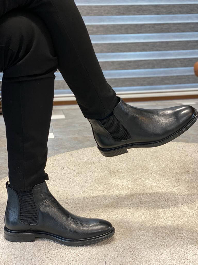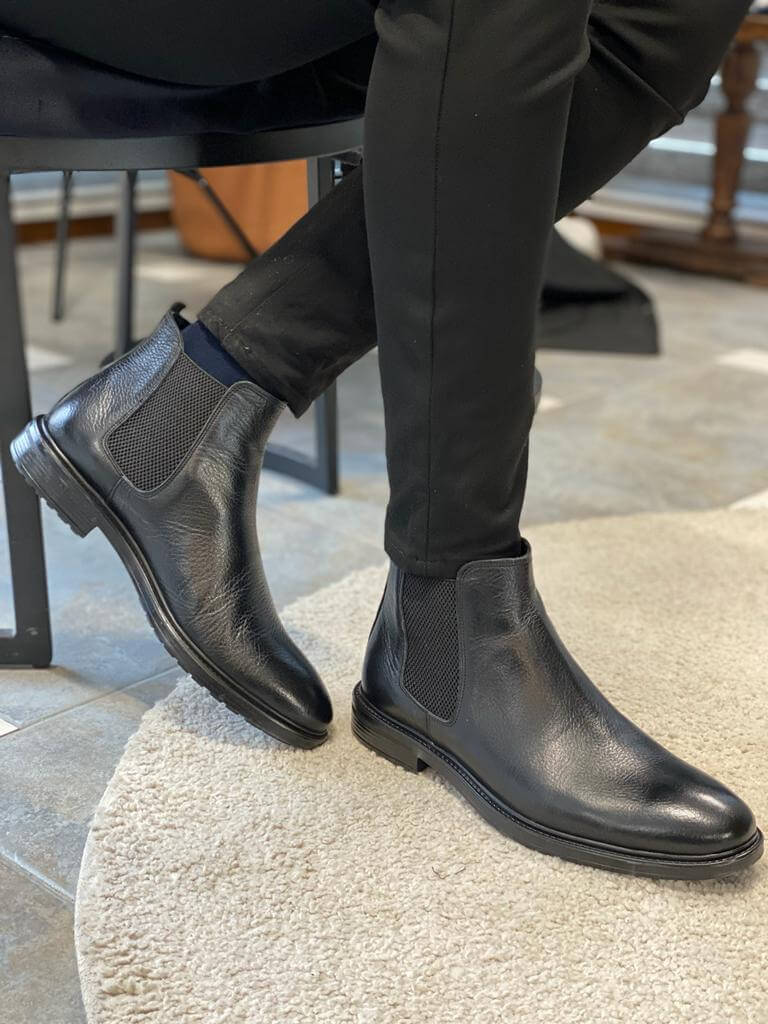 Coleção outono-inverno 21/22 da HolloMen, com destaque para a bota Chelsea preta.