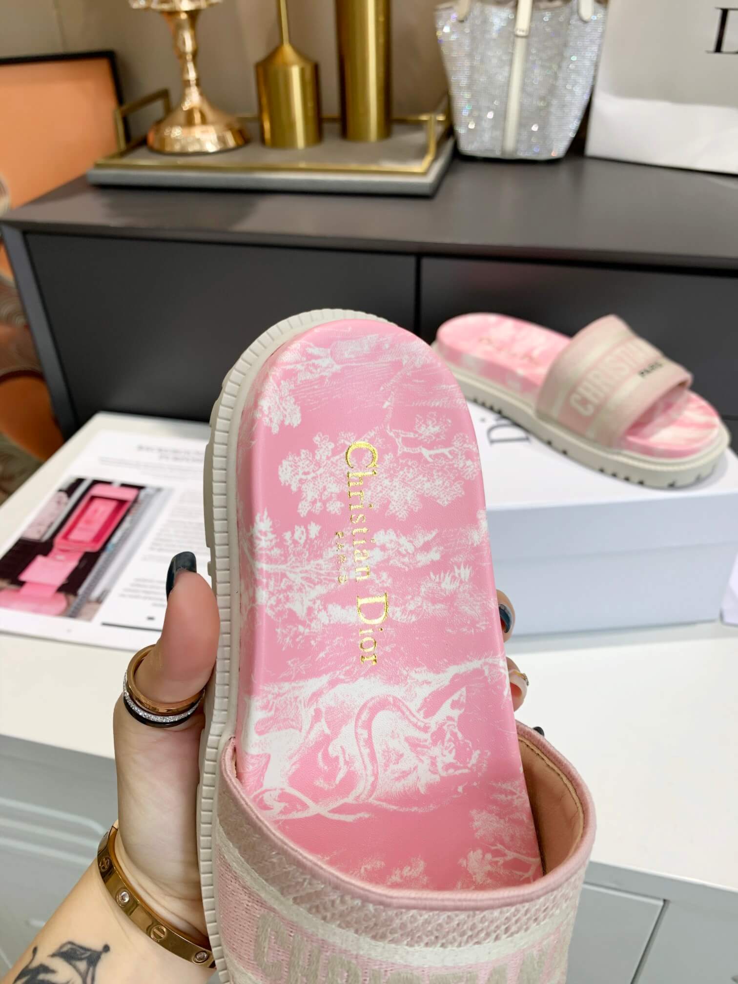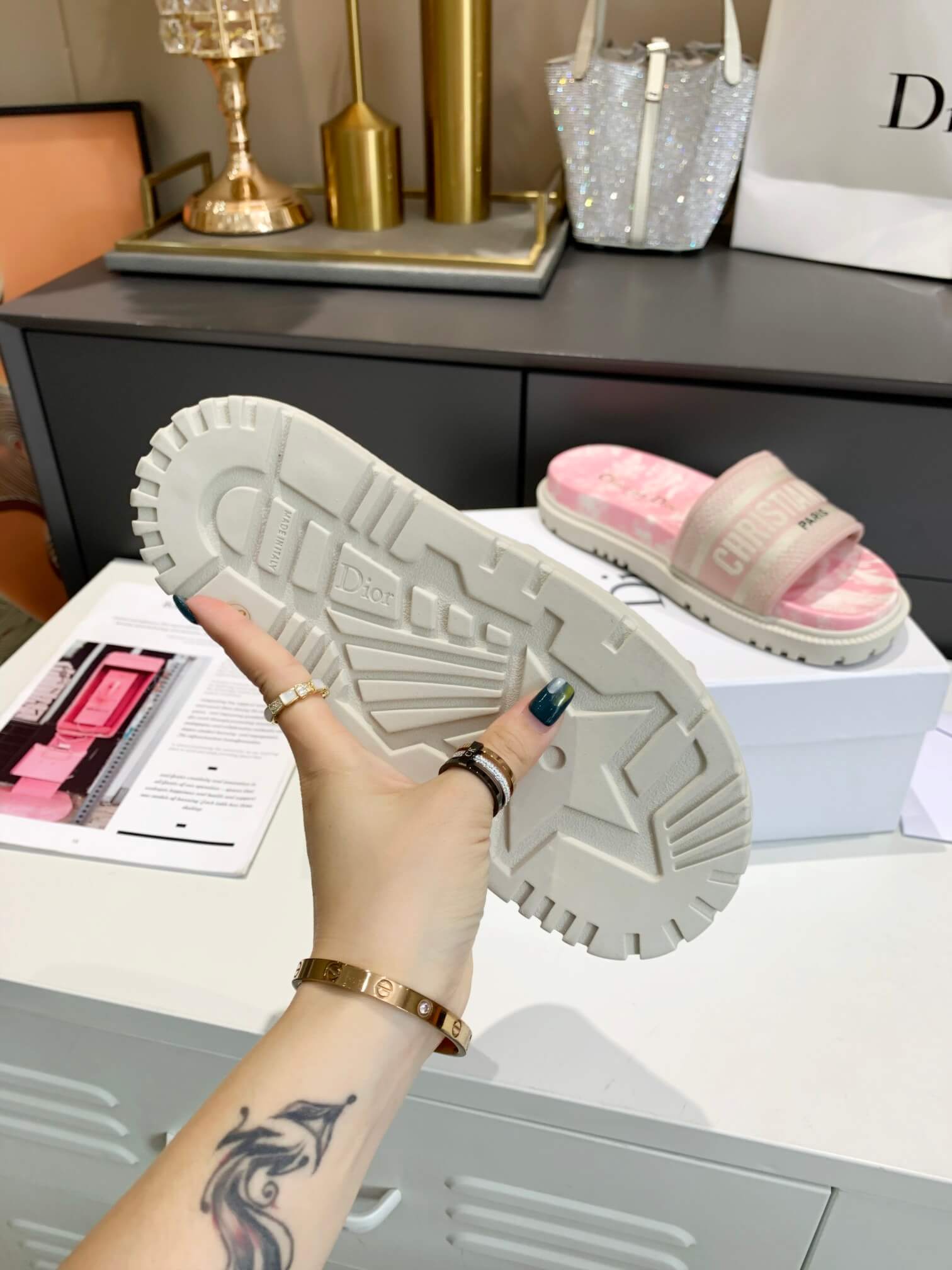 Dior D-Way Pink Marble with Beige Embroidered Strap Slides