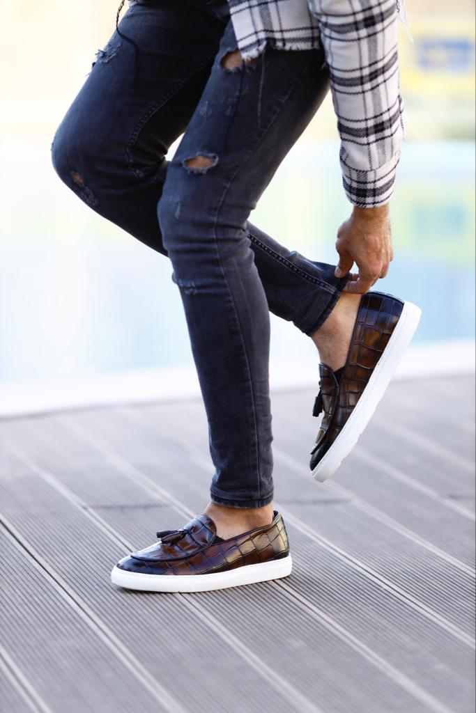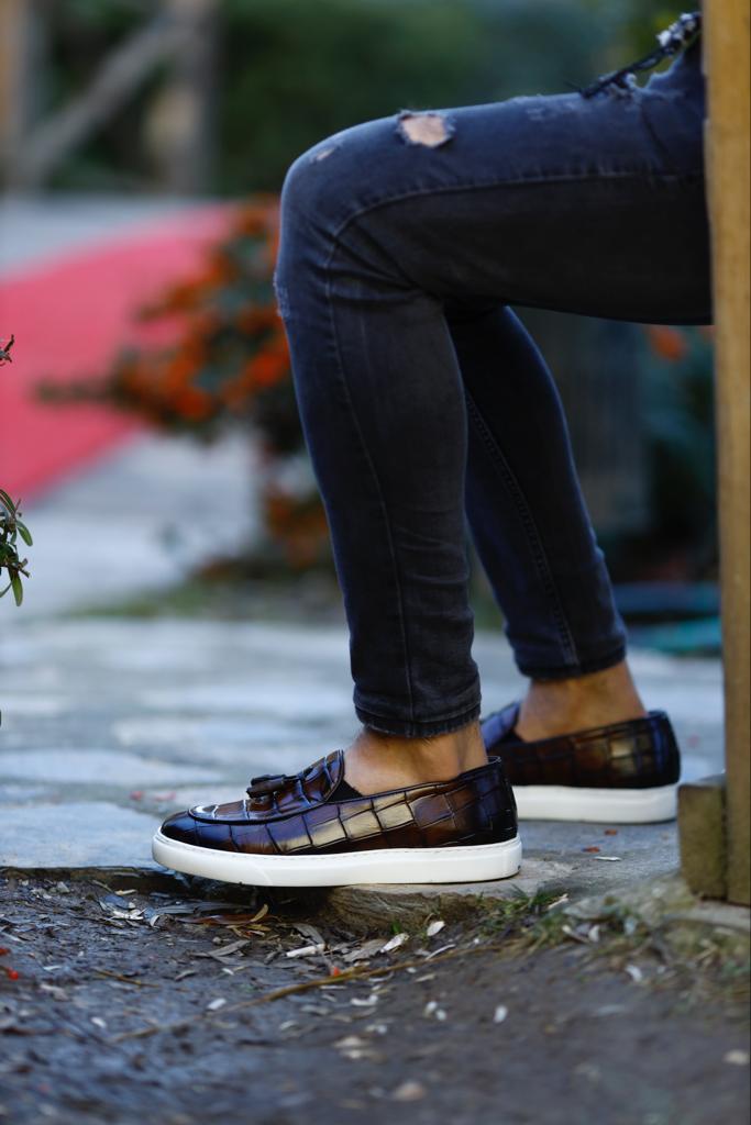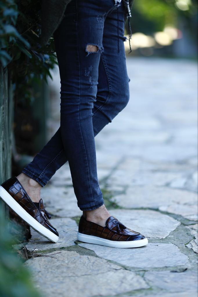 Estes marrons mocassins são feitos de couro 100% genuíno e apresentam uma sola Eva