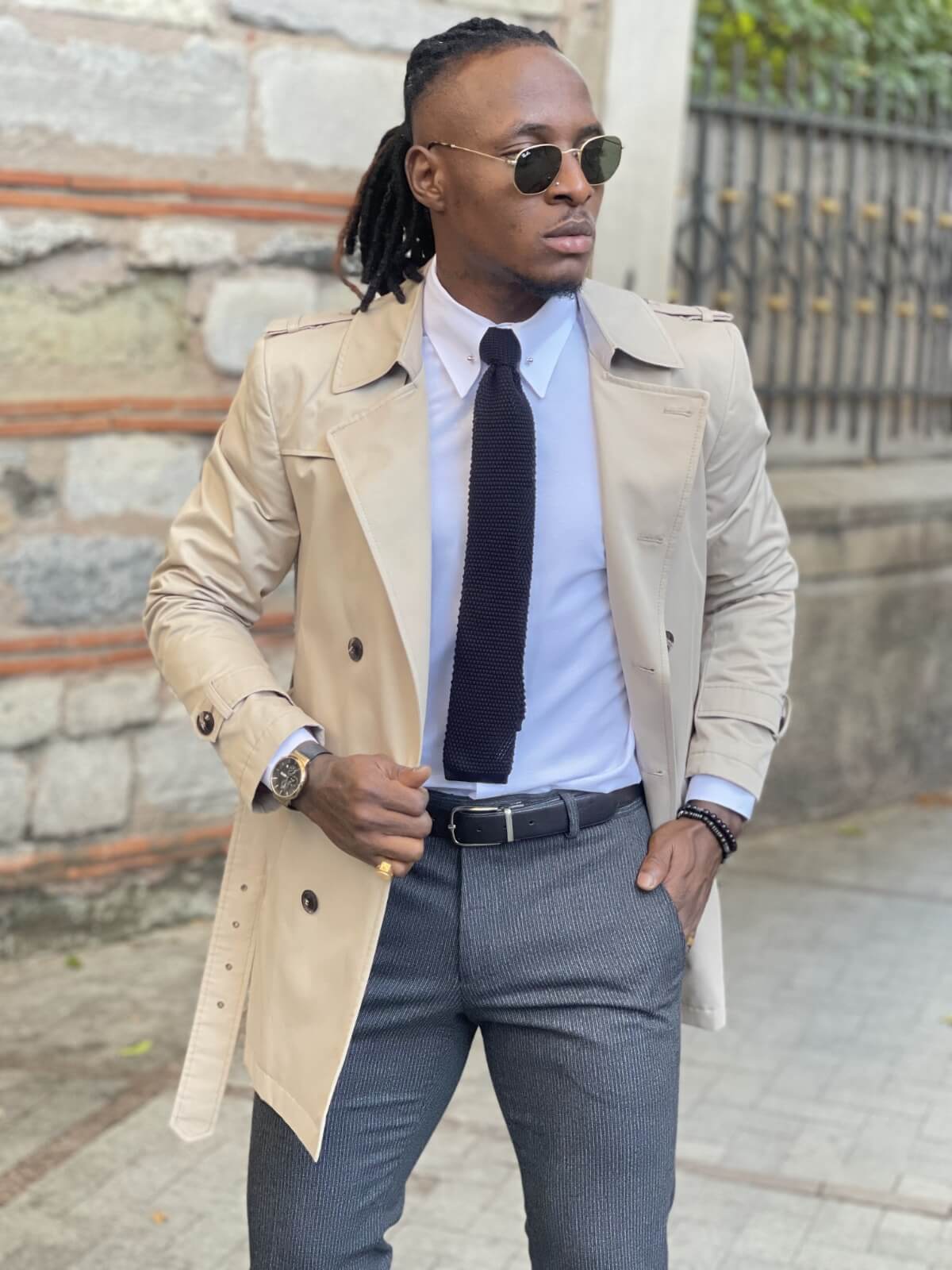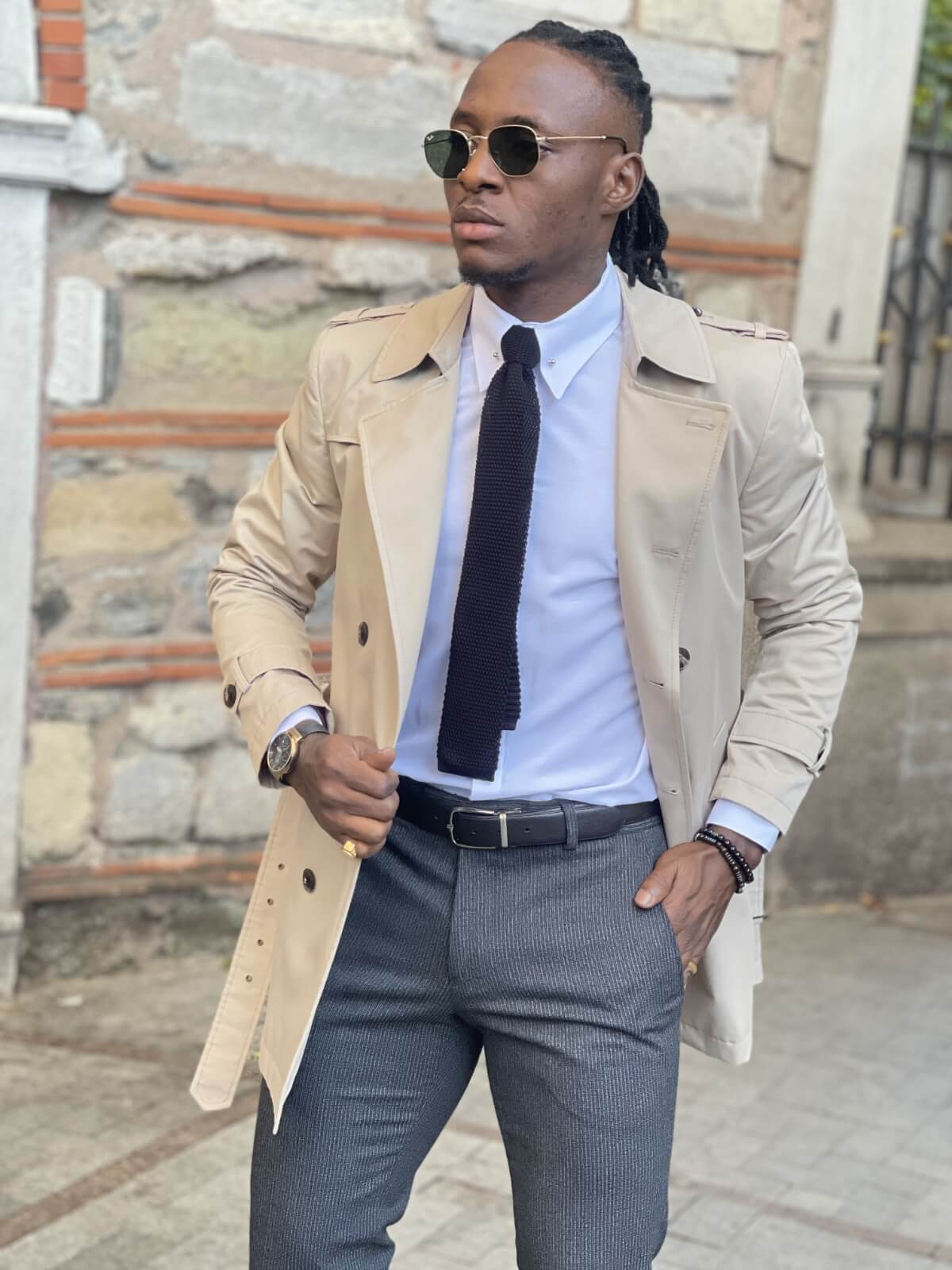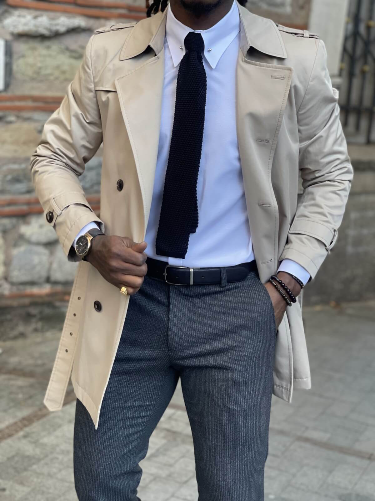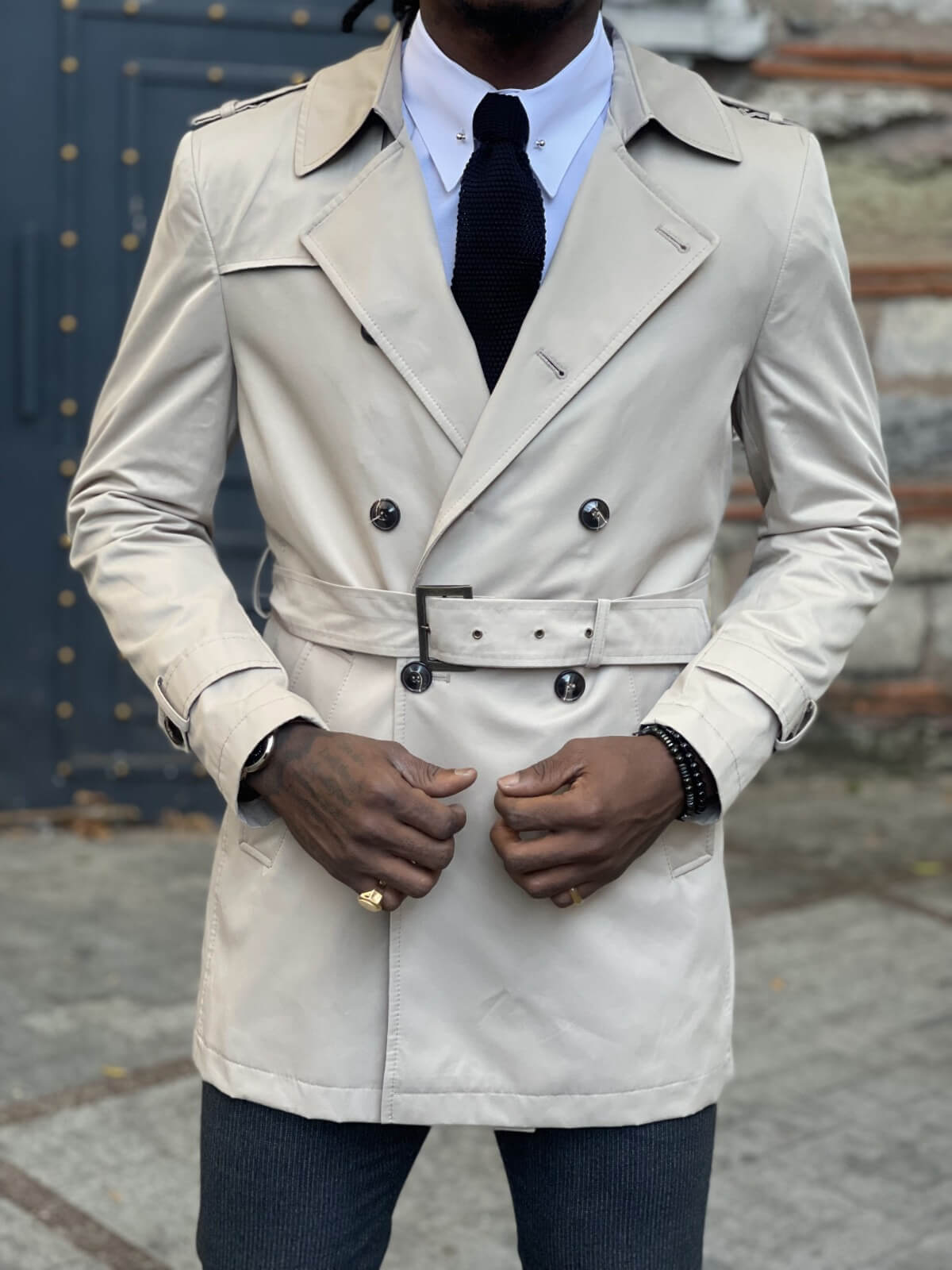 Apresentando o sobretudo bege slim-fit com design personalizado, uma adição estilosa à coleção outono-inverno da HolloMen.
