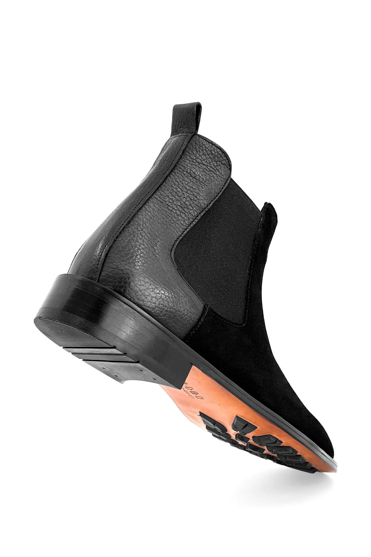 Entre na elegância intemporal com o Botas Chelsea Elmore Suede PretasFabricadas em camurça preta premium com painel traseiro em pele ligeiramente texturada, estas botas oferecem um conforto incomparável e um estilo despojado. As laterais elásticas garantem facilidade no calçar, enquanto a ponta arredondada acrescenta um aspeto clássico. Perfeitas tanto para uso casual como formal, as Elmore são essenciais para o dia a dia.
