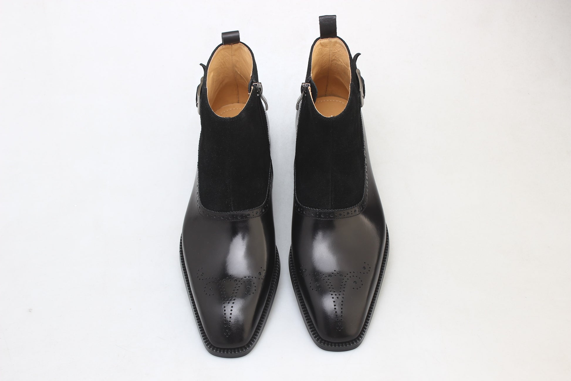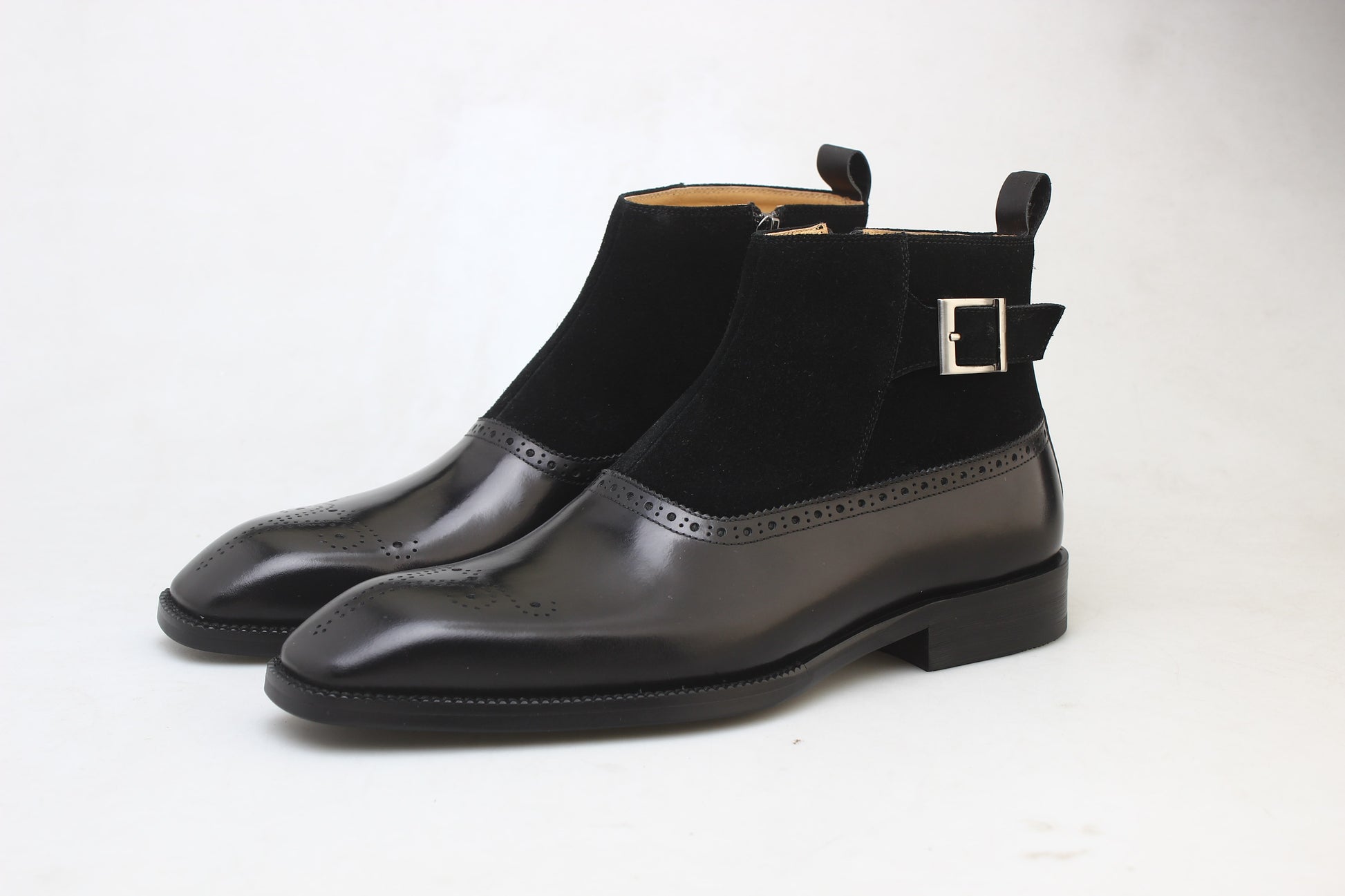 Negru Suede Brogue din piele Chelsea Cizme