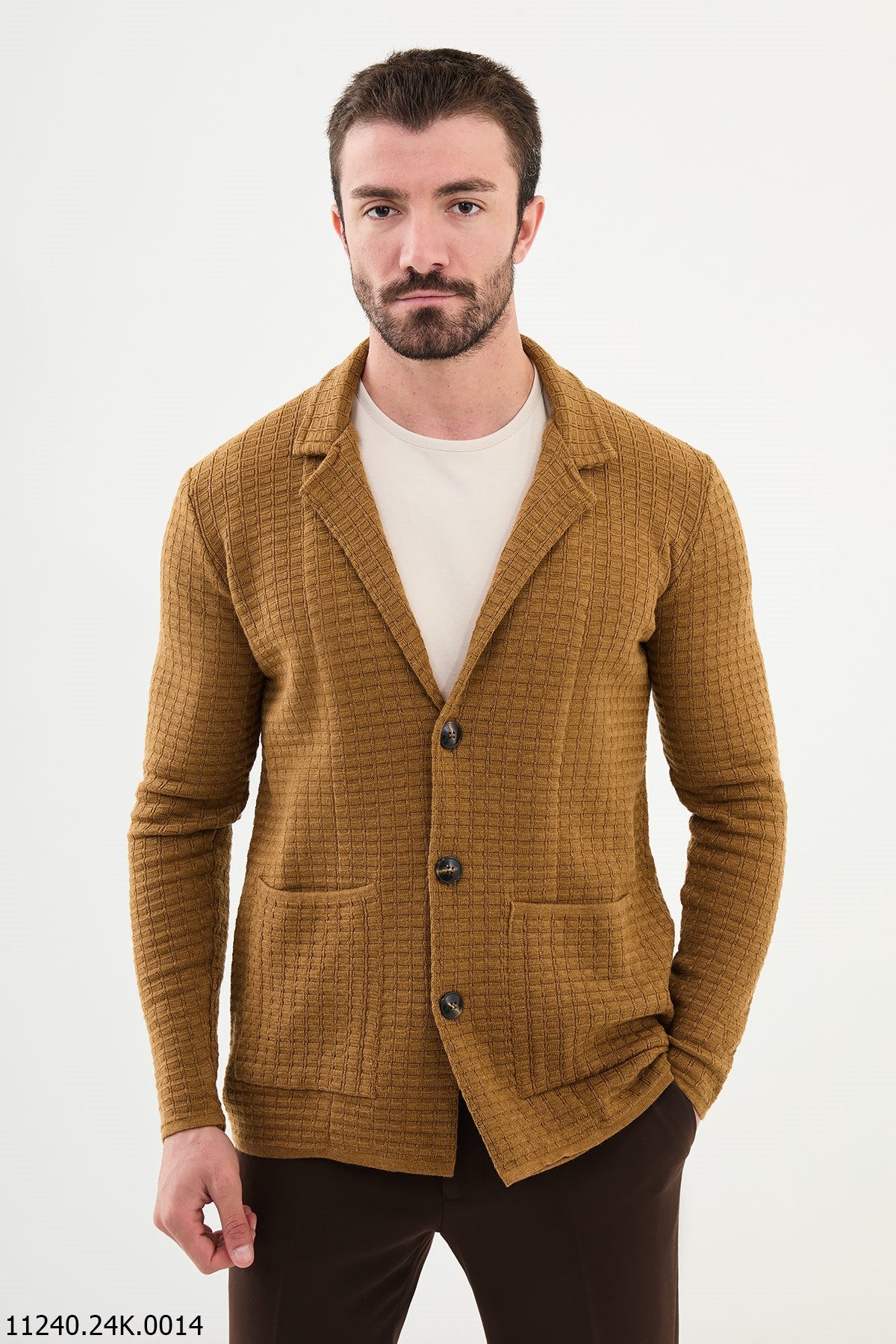 Adaugă o notă sofisticată garderobei tale cu aceasta Blazer cardigan texturat camel, conceput pentru purtare versatilă. Fabricat dintr-un amestec premium de 55% bumbac și 45% poliester, acest blazer cardigan oferă o potrivire ușoară, dar confortabilă. Finisajul său în tonuri de cămilă și modelul texturat complex oferă un aspect șic fără efort, perfect pentru ieșirile ocazionale sau evenimentele smart-casual.