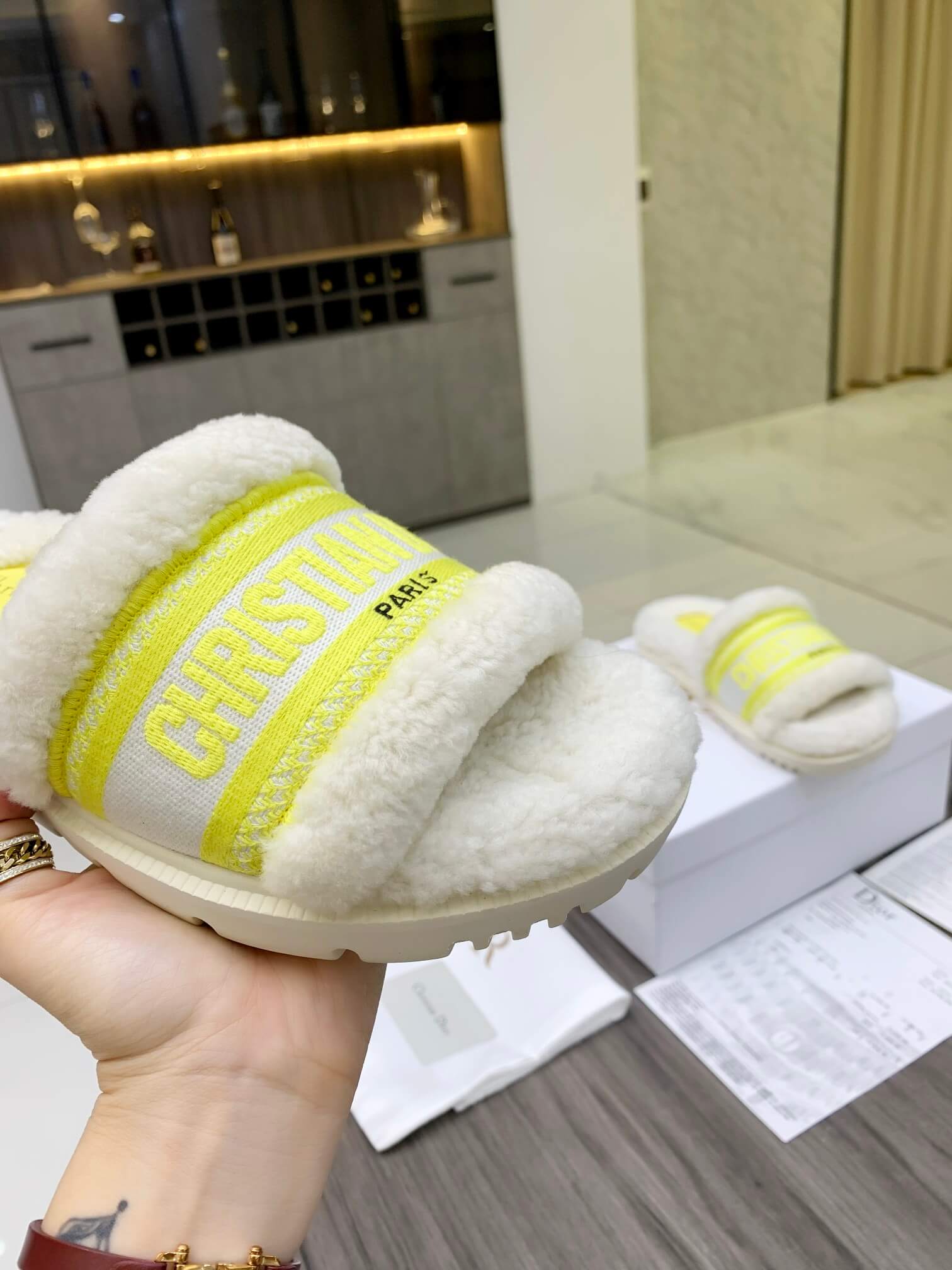 Sandale Christian Dior Dway verzi și albe cu blană de shearling și logo