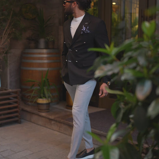 Obsidian Elegance Double-Breasted Blazer