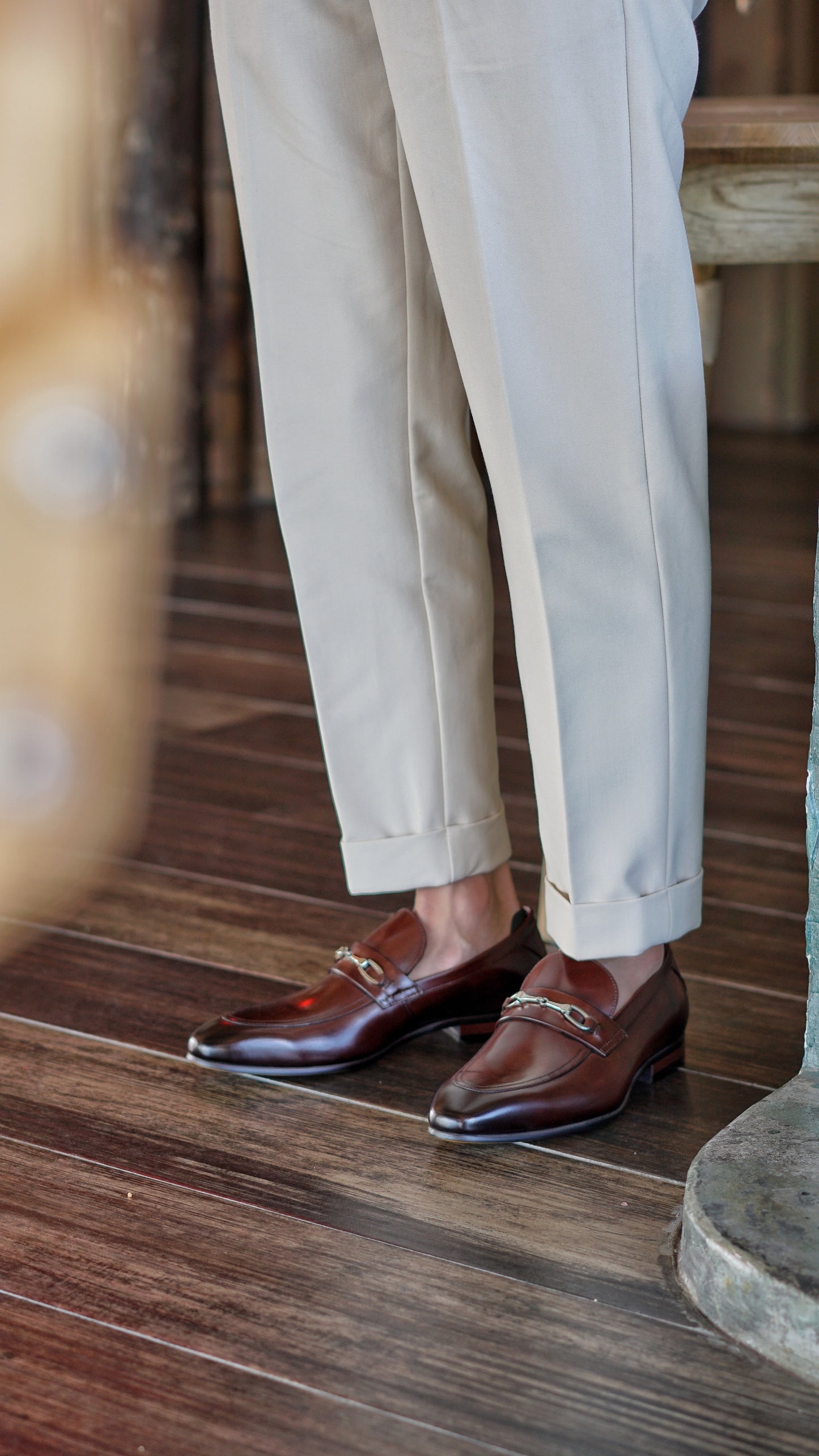 Crește-ți stilul cu acestea Mocasini Horsebit maro închis. Fabricat din piele premium, acești mocasini emană o eleganță atemporală cu o notă de fler modern. Semnătura morțișor de cal accentul adaugă o notă sofisticată, în timp ce nuanța bogată de maro închis completează o varietate de ținute. Indiferent dacă te îmbraci pentru o întâlnire de afaceri sau o ieșire de noapte, aceste mocasini de lux din piele oferă versatilitate și stil de neegalat.