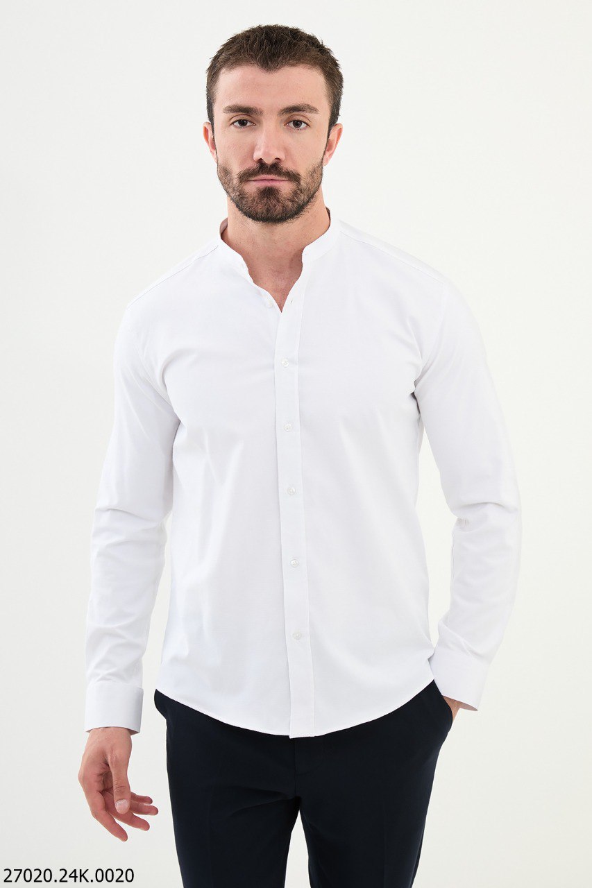 Elevate your wardrobe with this Ecru Mandarin Collar Slim-Fit Shirt, crafted from a premium blend of 55% cotton and 45% polyester. Designed for optimal comfort and breathability, this shirt features a sophisticated mandarin collar that adds a modern twist to your formal and semi-formal attire. Ideal for the Fall-Winter season, its slim fit offers a tailored look without compromising on comfort. Perfect for office wear, casual evenings, or special occasions.