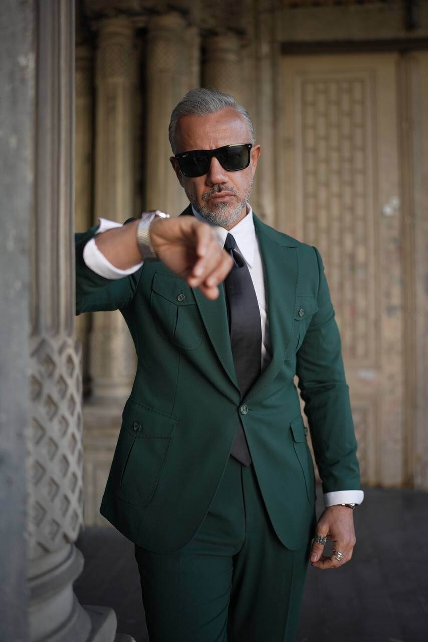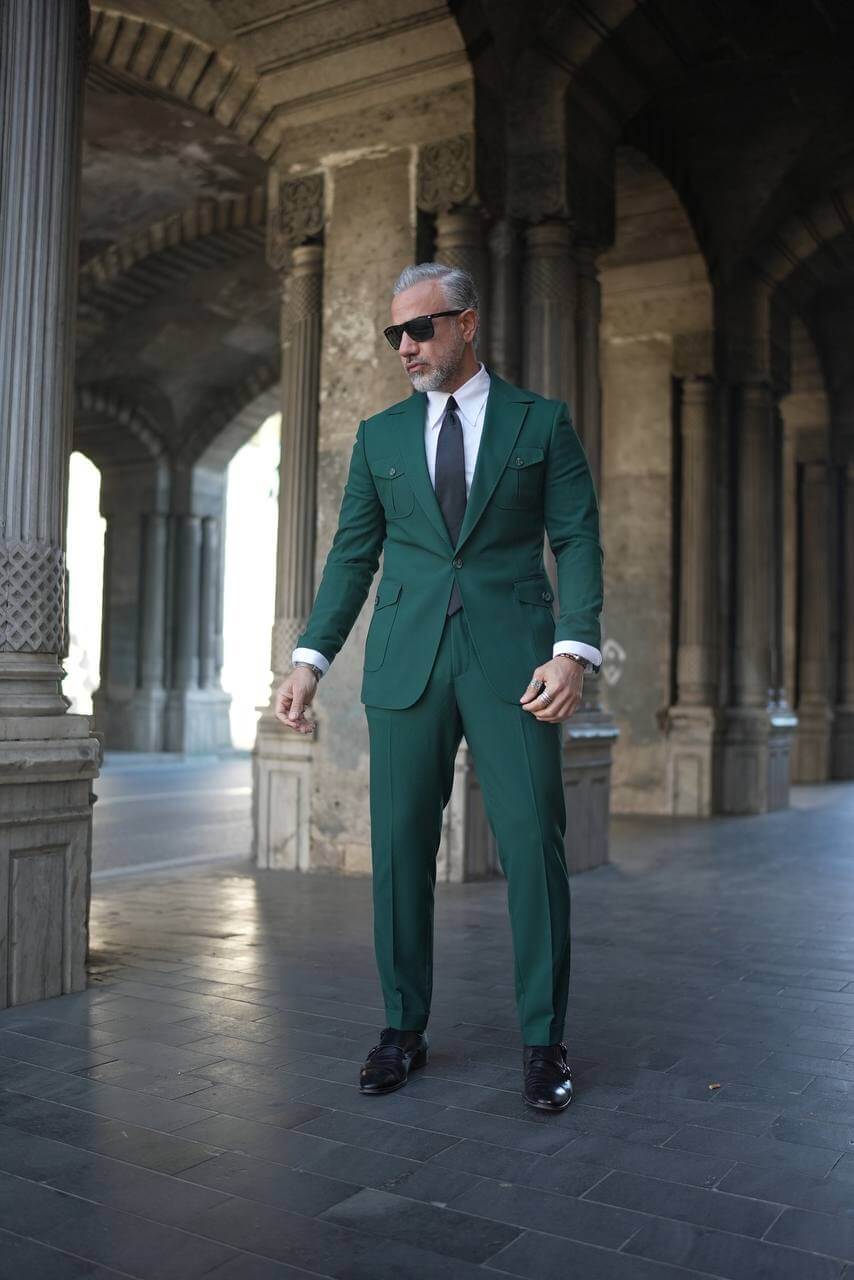 Elevate your formal attire with the Emerald Green Utility Suit from HolloMen. This impeccably tailored suit features a striking emerald green hue and practical utility pockets, offering a perfect blend of style and functionality.