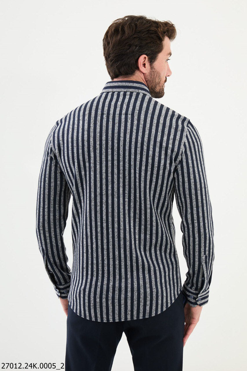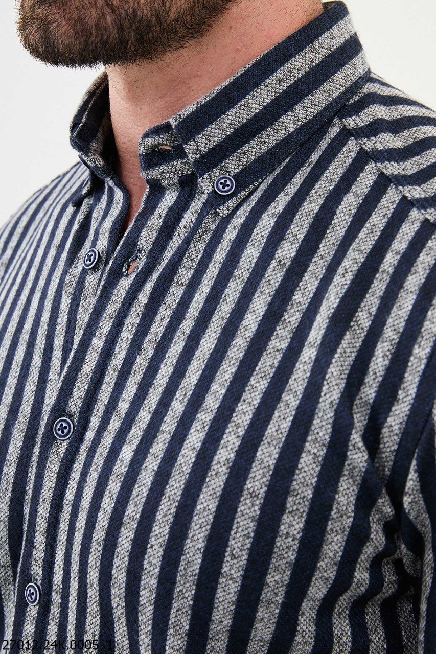 Gray - Navy Blue Striped Men's Casual Shirt.