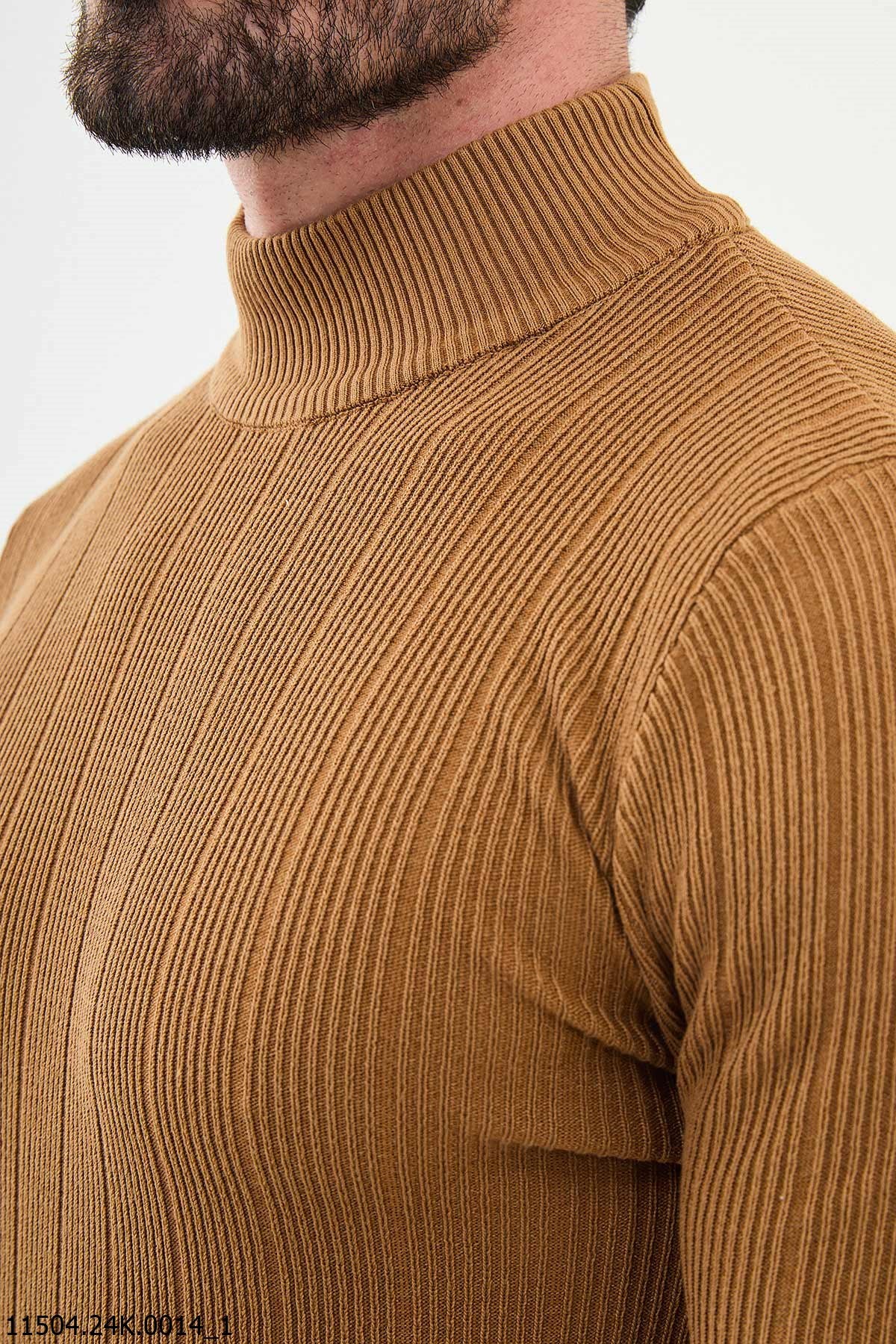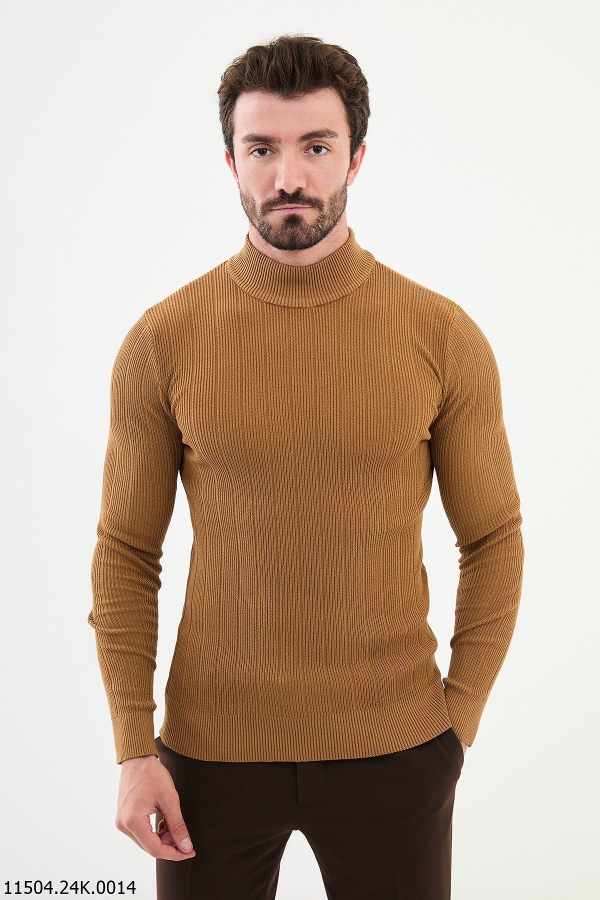 HolloMen Camel Brown Ribbed Turtleneck Sweater.
