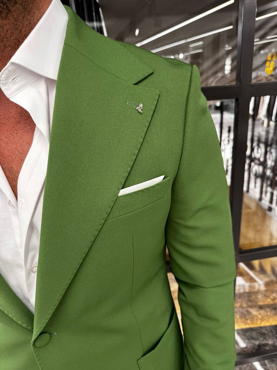 🟢 Features: Peak lapel, single-breasted design, precision stitching