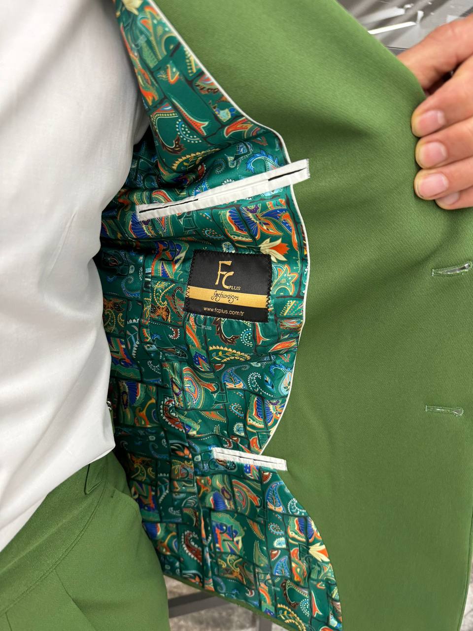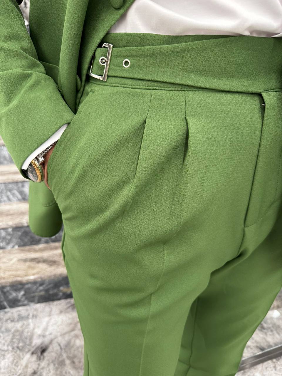 Elevate your wardrobe with the HolloMen Men's Green Regular-Fit Suit, designed for the modern gentleman who values style and comfort. Crafted from a premium blend of 55% cotton and 45% polyester, this suit offers a lightweight yet structured fit, ensuring all-day ease with a refined silhouette. The rich green hue exudes confidence, perfecting it for standout occasions, business meetings, or evening affairs. This ensemble is a must-have for those who appreciate timeless elegance, featuring sharp lapel, tailored trousers, and sleek pocket details.
