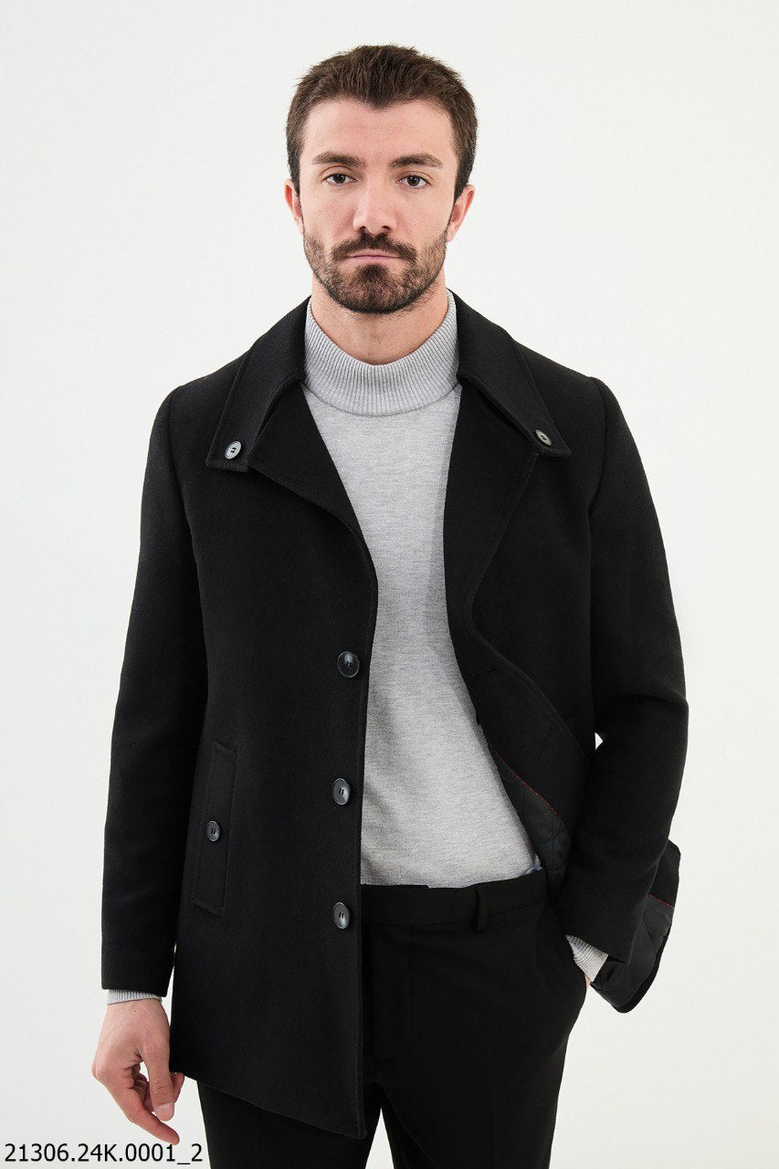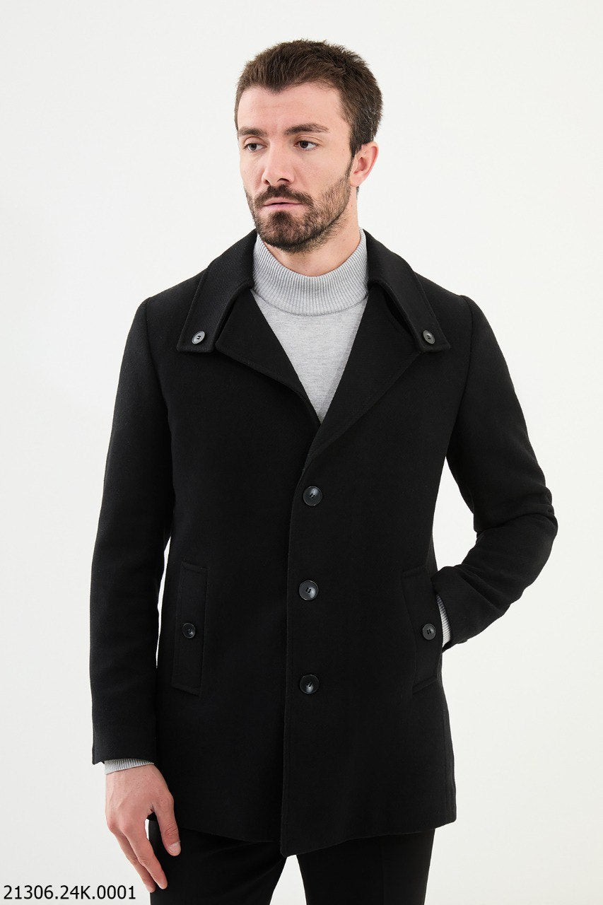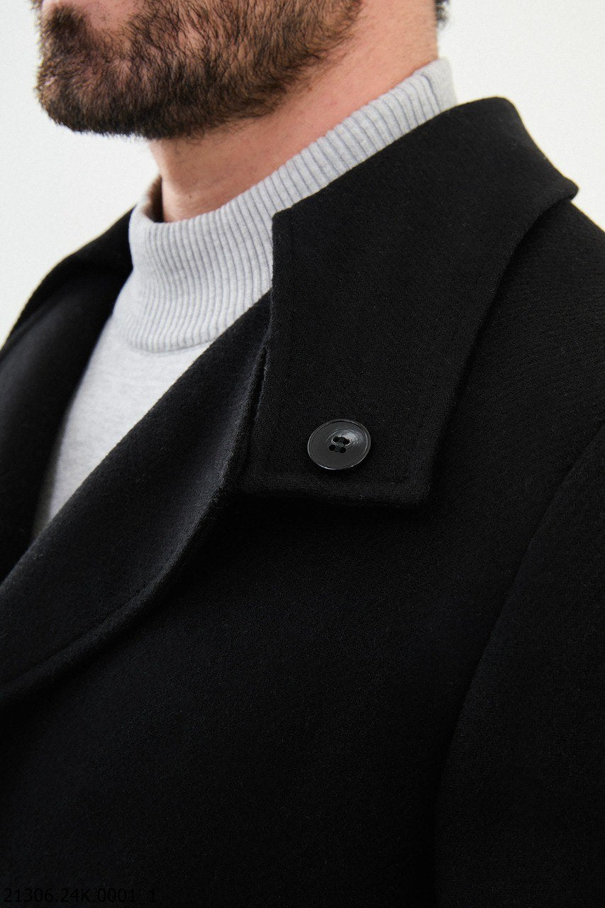 Palton de iarnă negru cu nasturi asimetrici pentru bărbați