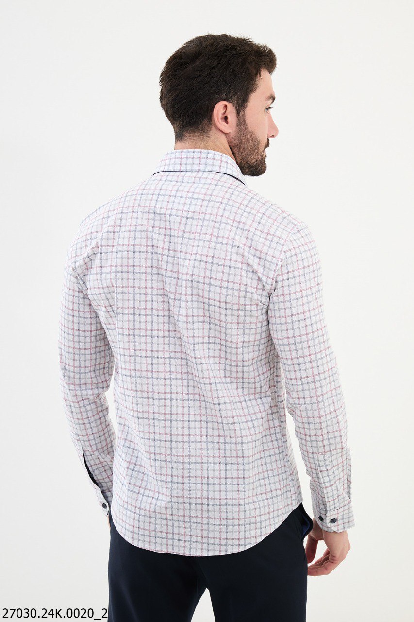 This classic men's white checkered shirt features a refined pattern of red and navy lines for a crisp, polished look. Crafted from a premium blend of 55% cotton and 45% polyester, this shirt offers softness, durability, and comfort. Designed for the Fall-Winter season, it keeps you warm while maintaining breathability. The structured collar and sharp button-up design make it a versatile choice for casual and formal settings.