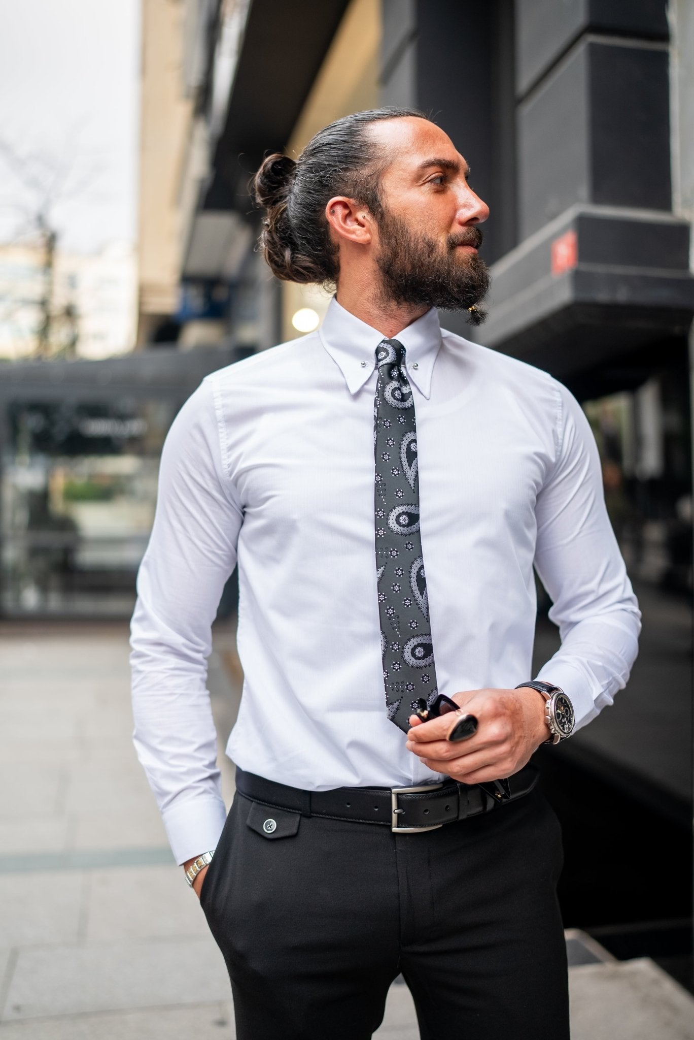 Style them with a black fitted shirt and loafers or minimalist sneakers for a modern edge. A tailored blazer will elevate the look for evening affairs.