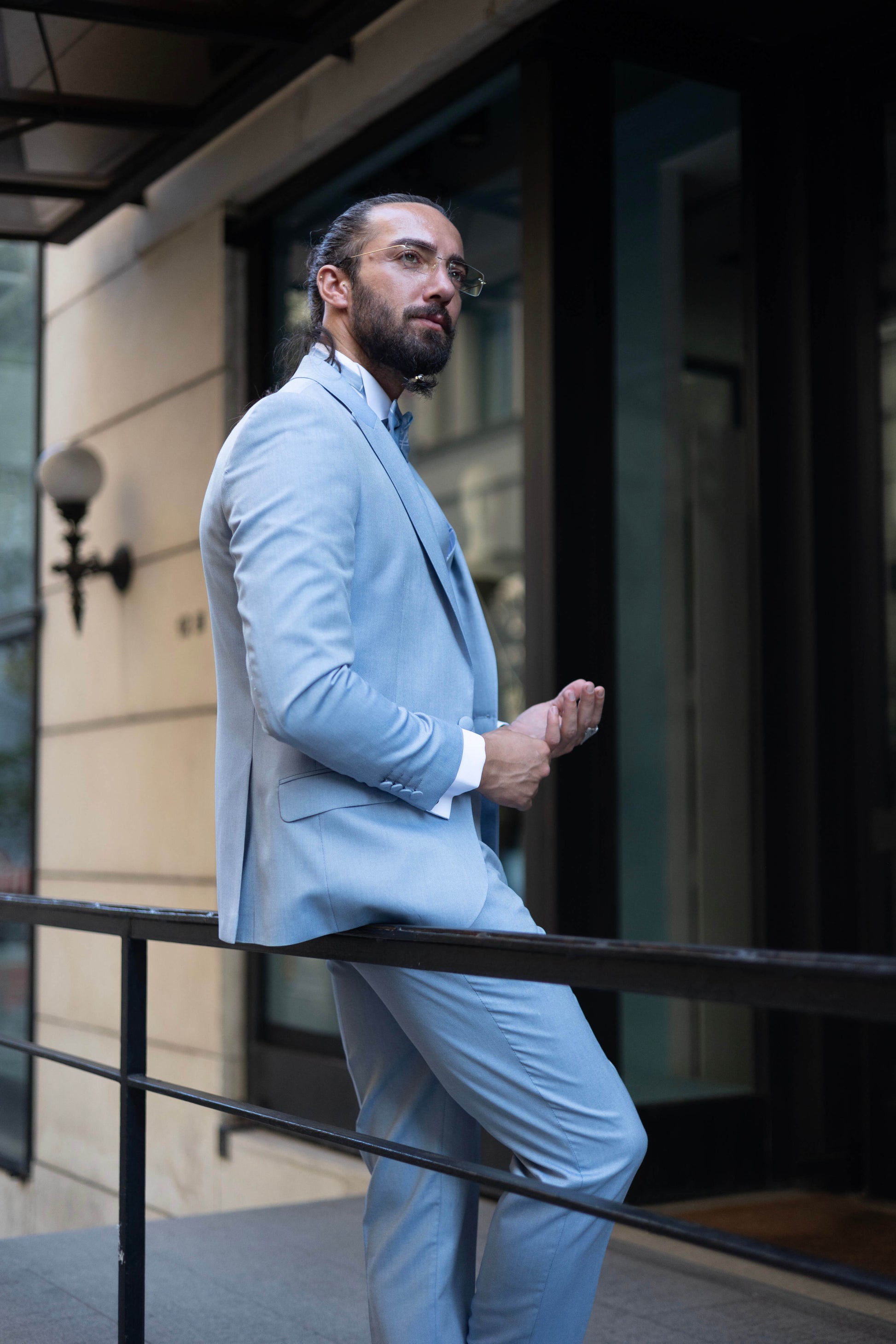 The Skyfall Light Blue Tuxedo Suit brings an elegant and fresh aesthetic to formal attire.
