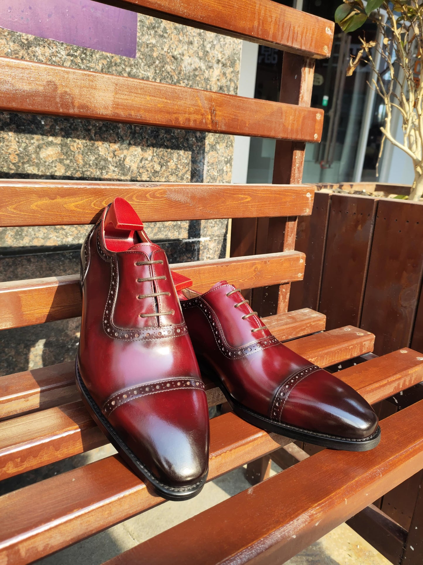 Embrace versatility and style with our Tan Suede Brogue Oxfords. These shoes blend casual and formal wear seamlessly, making them perfect for various occasions. The soft suede finish adds a relaxed yet polished look, while the intricate brogue detailing offers a classic touch. Whether you're dressing for a day at the office or a weekend outing, these handcrafted oxfords will provide comfort, style, and durability, making them an essential addition to any gentleman's wardrobe.