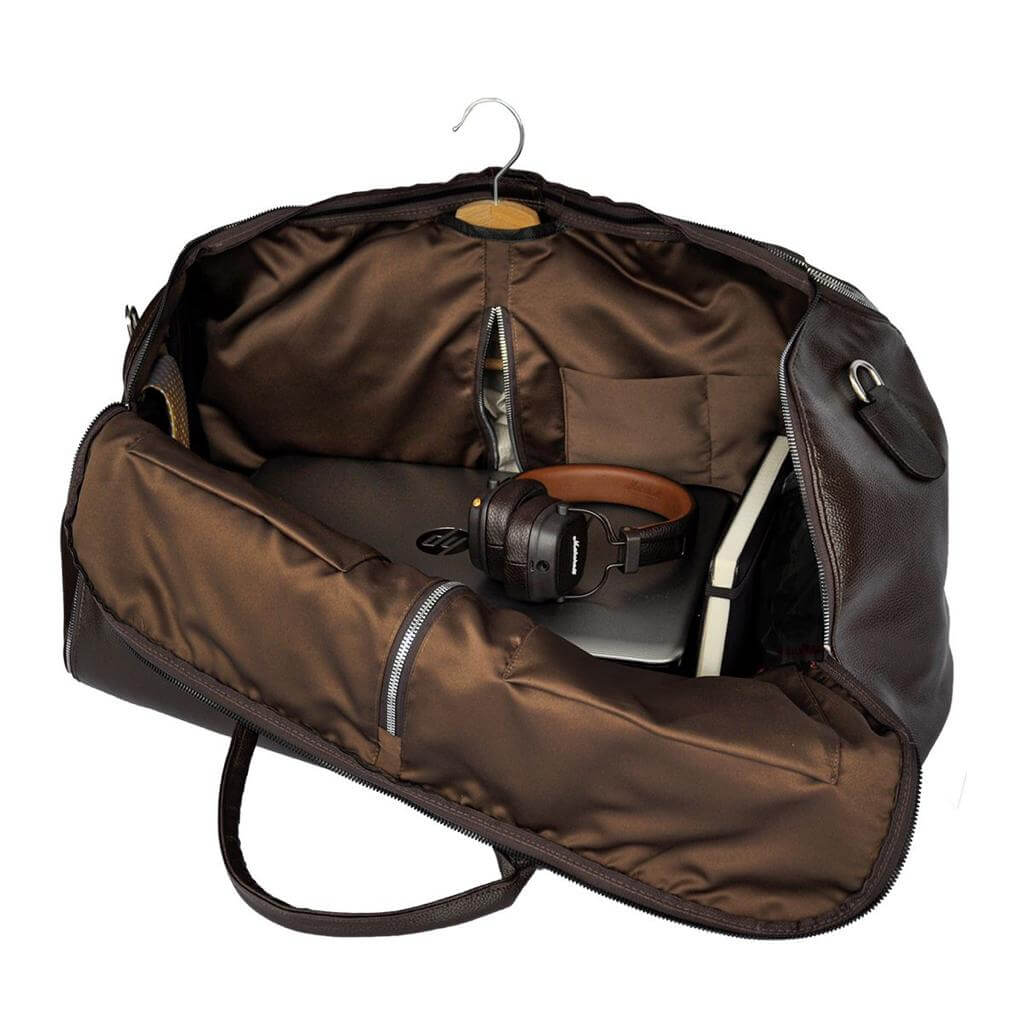 Geanta HolloMen Duffle Bag este o geantă elegantă, netradițională, care face geanta perfectă de vacanță/călătorie sau sport. Designul său luxos include un suport pentru costum și buzunare speciale în interior pentru a vă proteja accesoriile prețioase. Realizată din piele naturală, această geantă versatilă se ajustează în mărime pentru a se potrivi ținutei tale sau altor obiecte. Cureaua de umăr reglabilă cu căptușeală pe mânere îl face ușor de transportat.