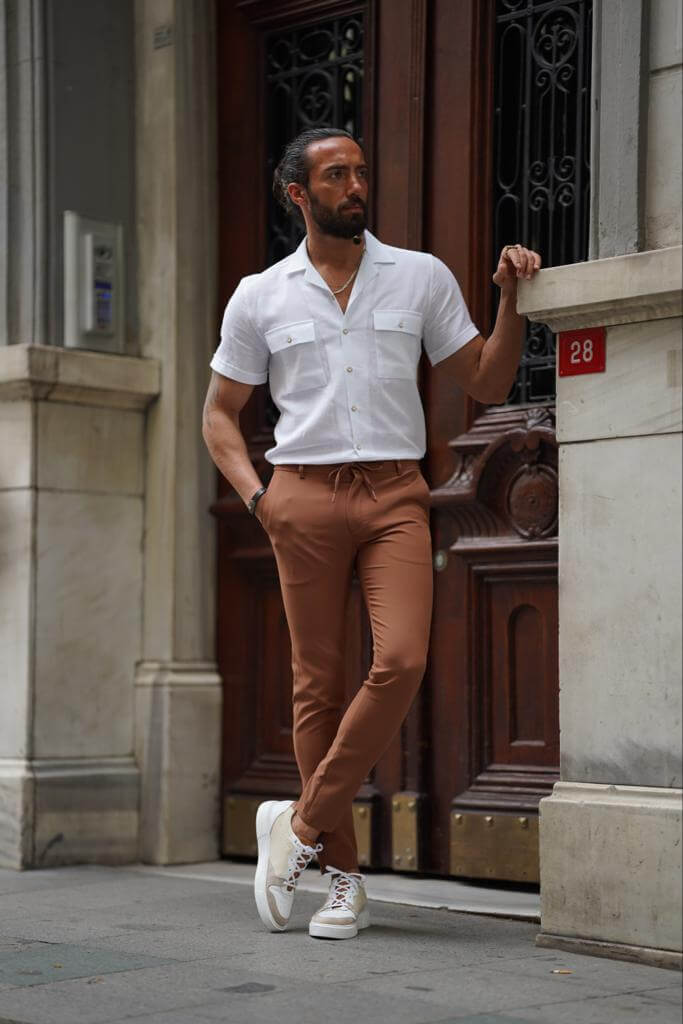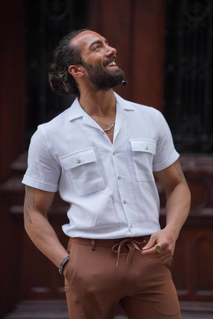 Our model, standing at 182cm and weighing 78kg, showcases the shirt in a Medium (M) size. For your perfect fit, please provide your height and weight during purchase.
