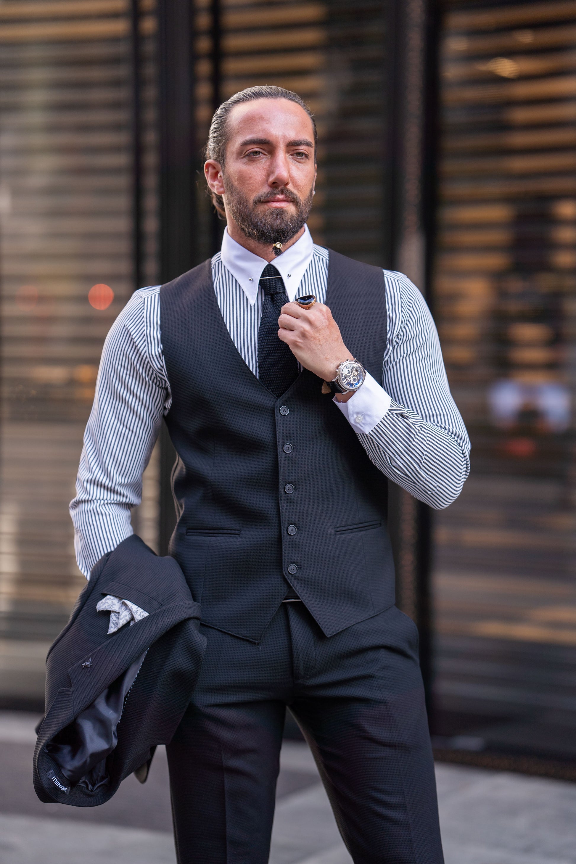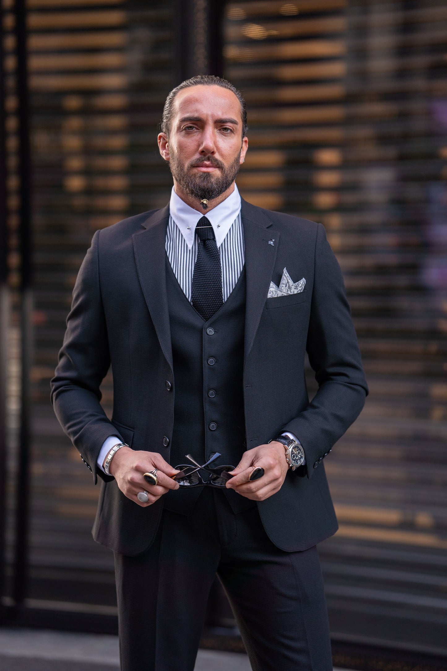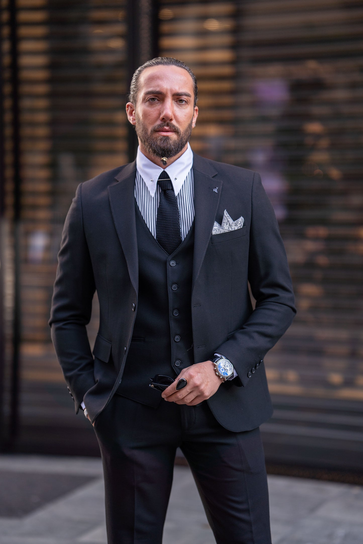 To maintain the premium quality of your Black Patterned Suit, dry clean only.
