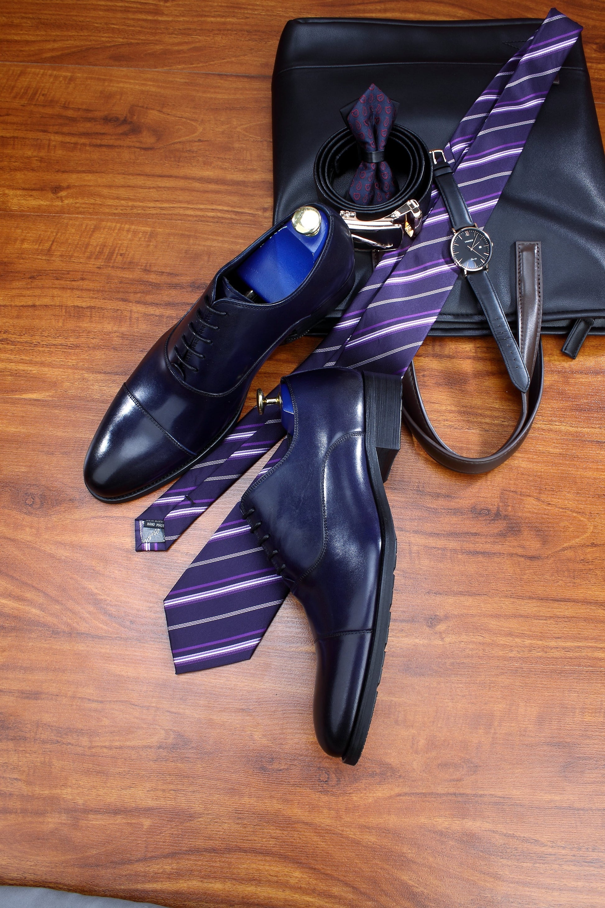 Step into sophistication with these Navy Blue Leather Oxford Shoes from HolloMen. These shoes are designed for the modern gentleman and offer the perfect blend of style and comfort. Crafted from premium full-grain leather, the sleek cap-toe design ensures a timeless look suitable for any formal occasion. Whether heading to a wedding, an important meeting, or a black-tie event, these shoes will elevate your ensemble effortlessly. Pair them with your favorite tailored suit to make a statement of luxury and class.