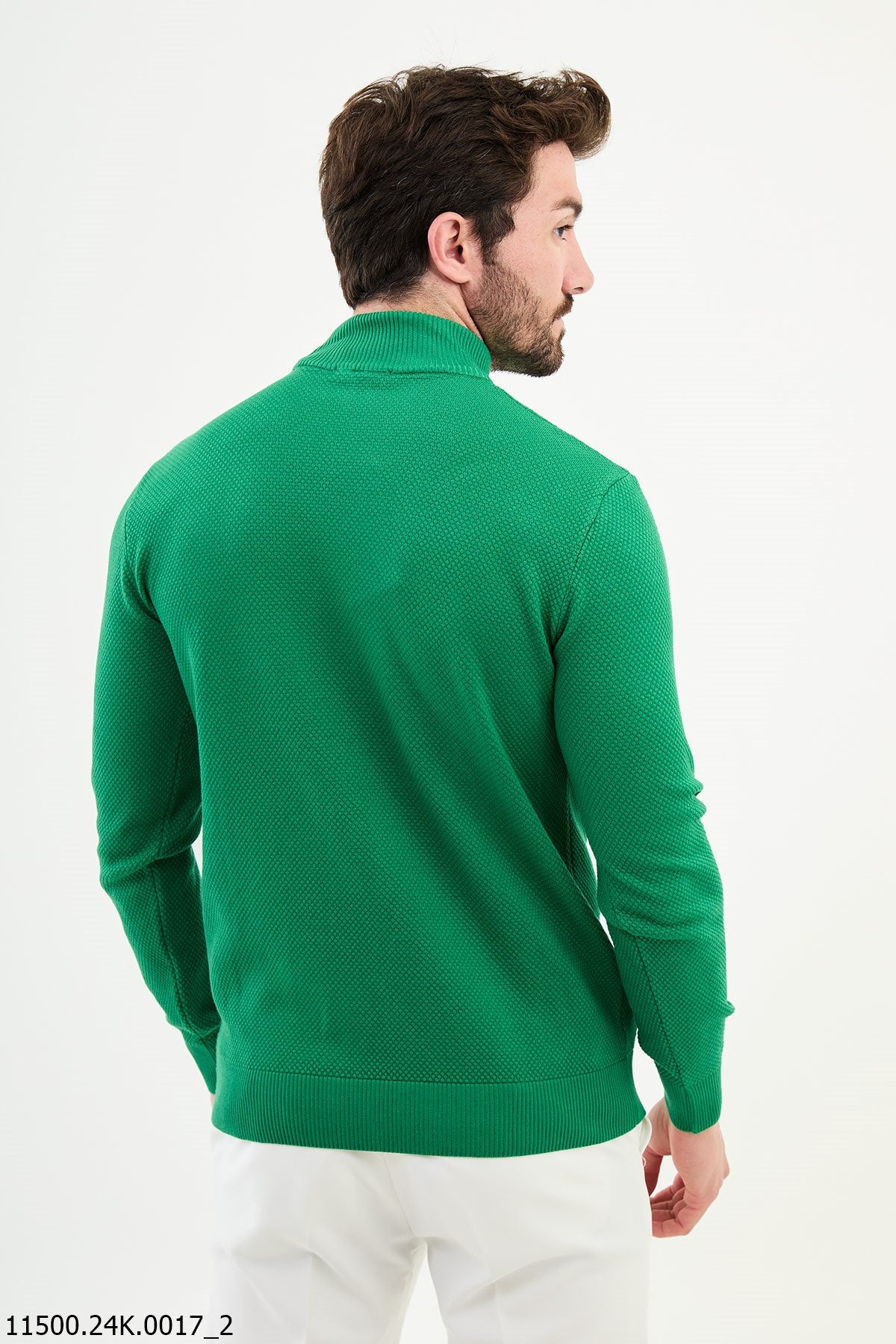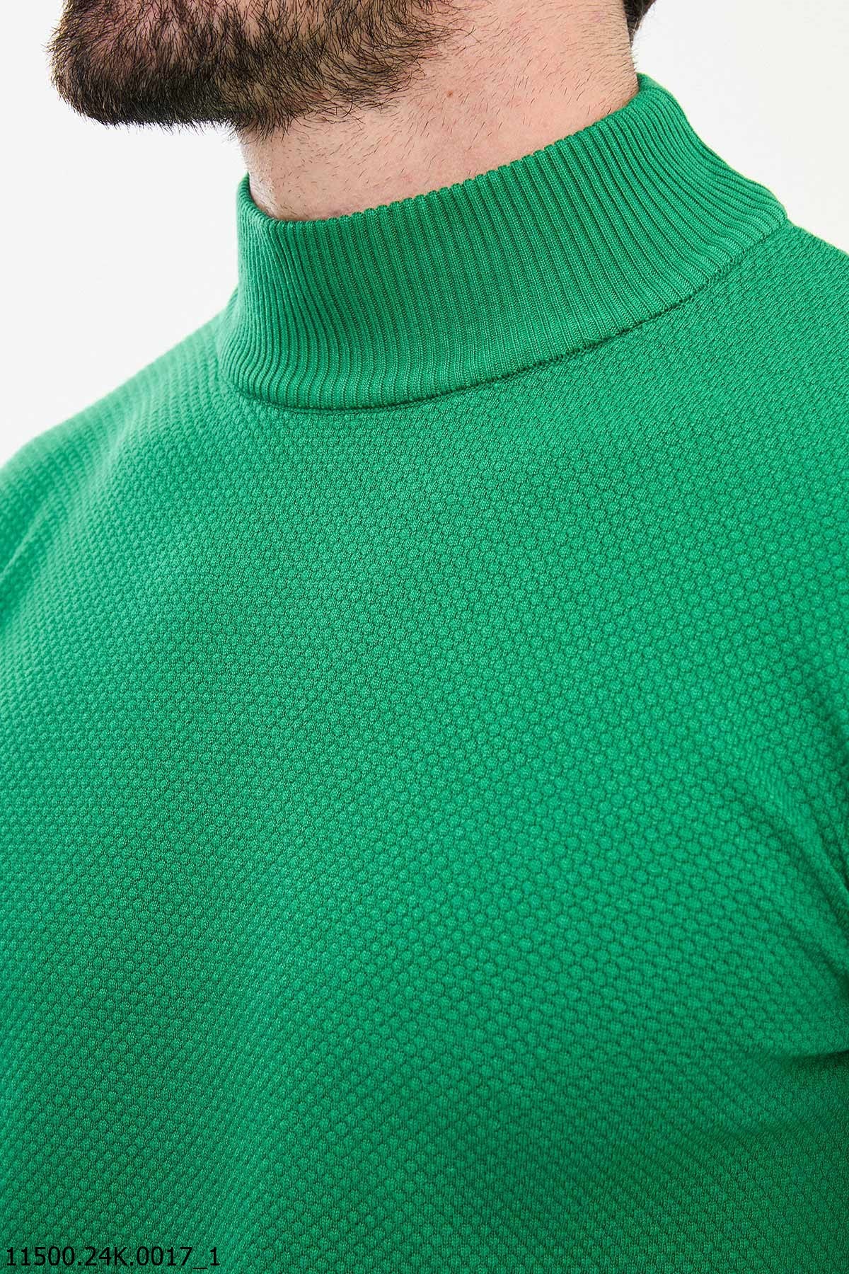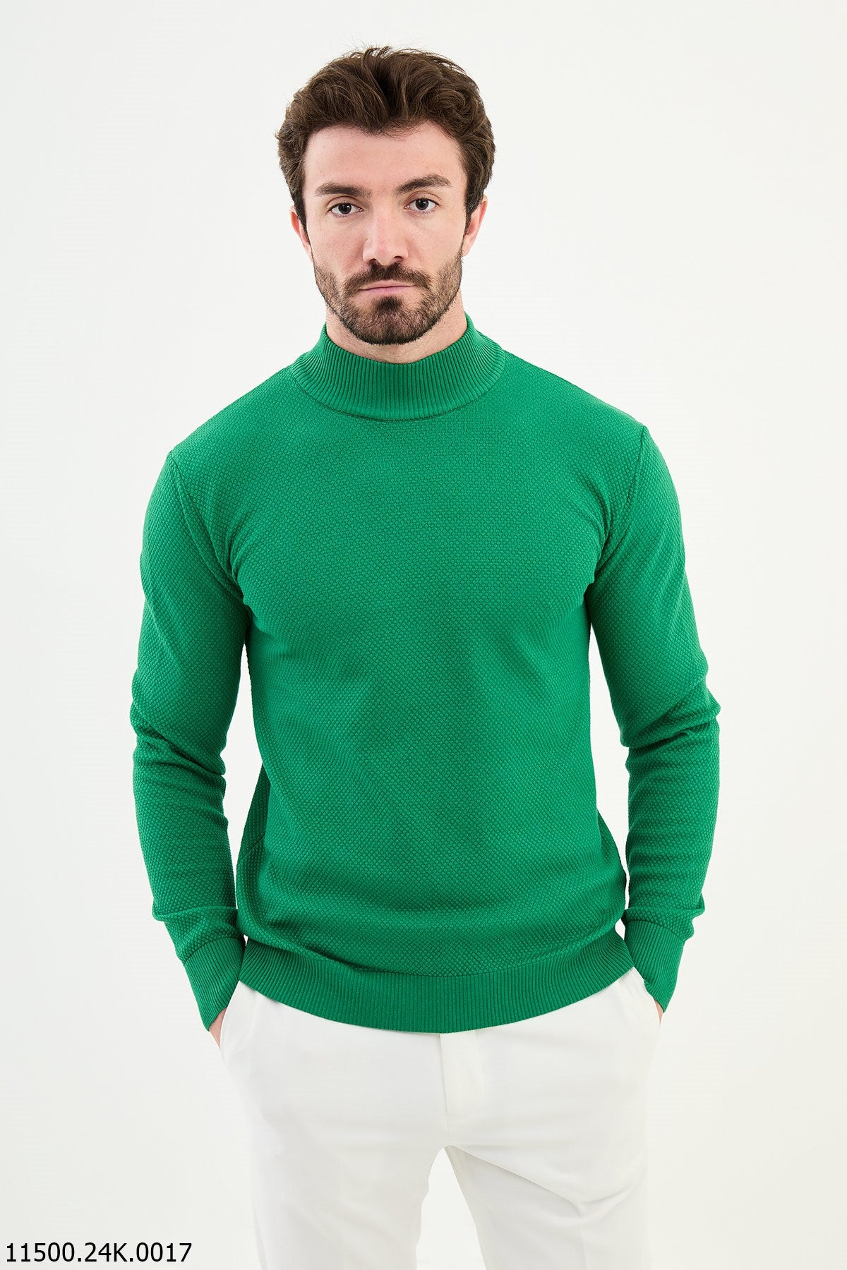 HolloMen Vibrant Green Textured Turtleneck Sweater.