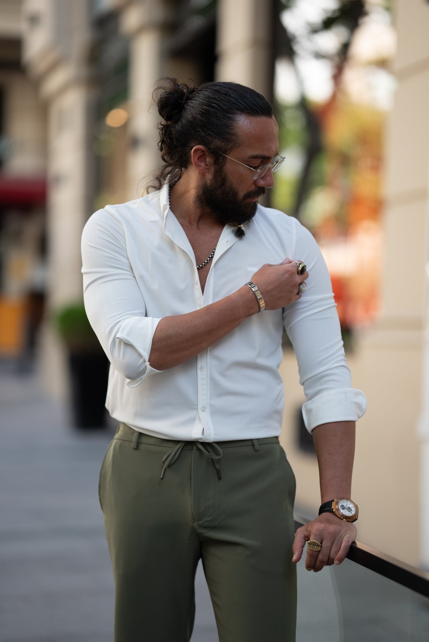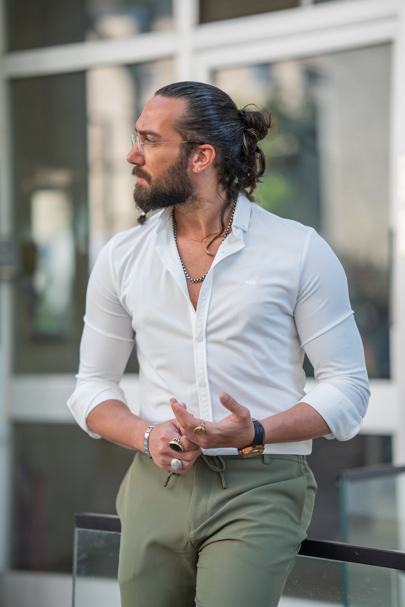 We're Featuring a Special Design Slim Fit White Cotton Satin Lycra Shirt
